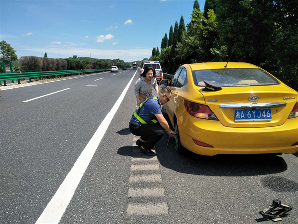 “你好,我车子左边后轮胎爆胎了,车上有工具,但是我扭不动那个轮胎螺丝。我车上还有一个老人一个小朋友,请问你们能不能帮忙弄一下?”这位女车主焦急地说道。