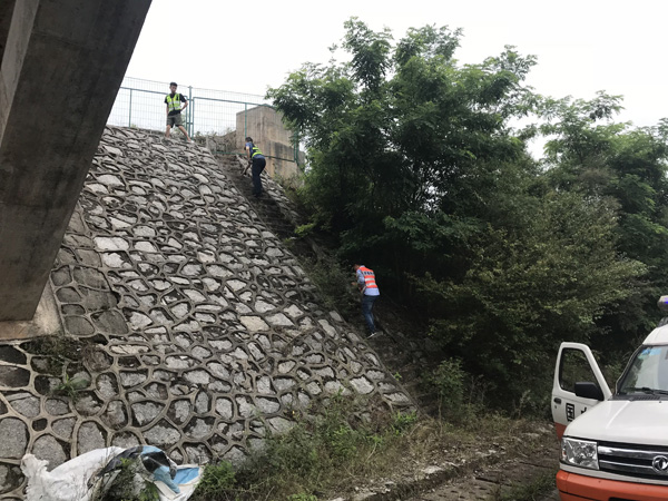 8月15日,南岳路政大队联合衡炎养护片区,展开了一次全面排查护坡和排水沟安全隐患的联合巡查行动。上午9时,路政人员深入到杂草丛生、距离路面200多米、与路面垂直高度为80多米的护坡挡土墙上,检查排水设施,对辖段内的护坡、排水沟、截水沟开展了认真、细致的检查。排除中发现有5处排水沟满是淤泥、垃圾。为提高道路排水能力,有效预防事故的发生,南岳路政大队立马联合衡炎养护片区,对辖段内堵塞排水沟、边沟进行了清理,并将清出的淤泥和垃圾及时运走,为高速公路安全度汛提供了保障。
