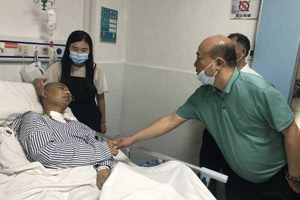 2020年8月26日,湖南省高速公路集团有限公司郴州分公司党委书记、总经理周文,党委副书记、工会主席王文浩,党委委员、副总经理李曙光等一行,带着集团公司党委的心意和嘱托,专程来到郴州市第一人民医院看望慰问正在患病治疗的一线员工骆中翔。