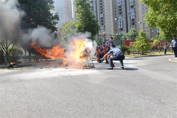 紧接着,两人一组三队同时竞技的灭火项目鸣锣开赛。参赛队员手提灭火器奔向着火点,对准火源全力灭火......