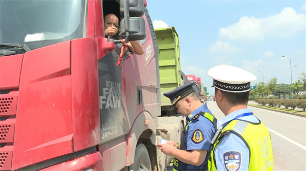“你好,请出示你的驾驶证及车辆相关证件。”在黄桥大道上,执法人员示意一辆砂石车靠边停车接受检查。经检查,该车存在涉嫌超载这一违法行为。民警现场对驾驶员批评教育,随后将车辆带至超限检测站,按照相关法规依法对驾驶人进行处理处罚。