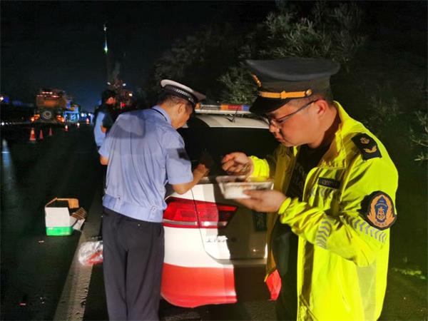 由于该事故车辆装载了32吨土豆,土豆属于新鲜蔬菜不能耽误,用机械装车对土豆损害太大,加之天色已晚,为减少货主损失,路管员与高速交警商议后决定先将路面的土豆移至应急车道,用反光锥形桶维护好,第二天清早人工帮忙装货转运。