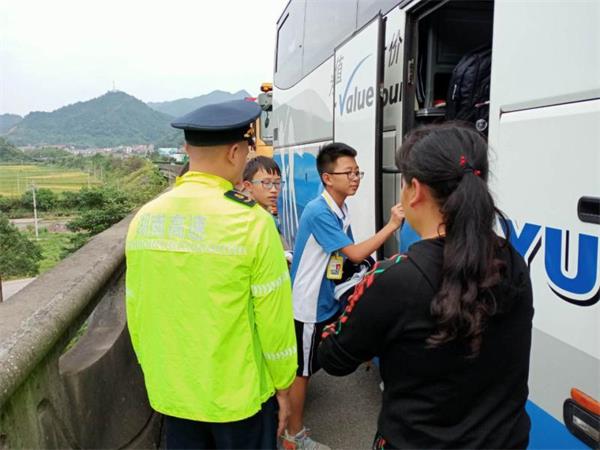 15时12分,转运车辆抵达现场,故障客车内47名学生及随行的2名家长在路管员及交警的有序组织下,全部安全登上转运车辆。