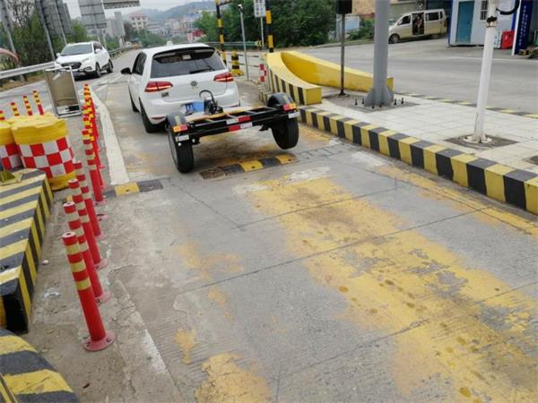 原来,这辆小车的背后还拖挂着一个小型平板车,这样一辆改装车上路,会给高速公路行车安全带来严重的安全隐患。