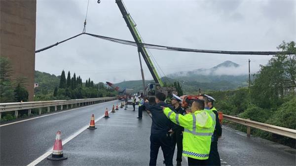 8点38分,交警和路政已经分别南往北宜章互通、北往南水龙互通进行分流,衡阳广铁部门也已派技术人员赶赴现场处置。根据进一步勘察结果,郴州分公司、郴州支队、宜章应急管理局现场指挥小组决定先行通过采用起吊支撑电缆的方式尽快恢复交通。