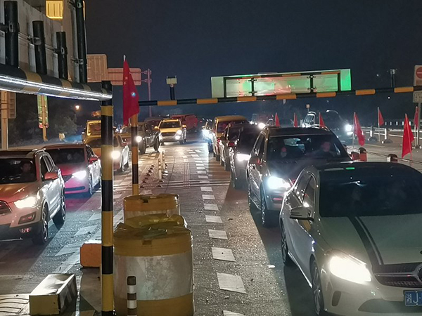 在以往一两个小时就能放通车流的情况下,这次显得格外漫长,在紧张有序的氛围中,大家一直忙碌到凌晨,现场才渐渐恢复正常。期间累计发放纸质卷1265张,CPC卡443张,解答司乘人员问题160余次,无一起车辆剐蹭与追尾,虽然车流量大,但无一起投诉,获得司乘人员一致好评,望城收费站全体工作人员不仅成功督导了一次超级流量,并且完美对接了国庆、中秋双节,让我们为他们点赞。