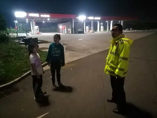 10月1日晚8时许,长芷高速车流量剧增,娄底路政大队巡逻员李理、游智翱正在桥头河服务区当班巡查,忽然发现服务区加油站边角落处有两名小女孩在四处张望,神色慌张,小女孩大约七八岁的样子,看起来很着急,二人觉得情况不对,立即下车询问。