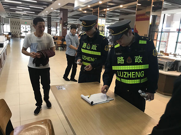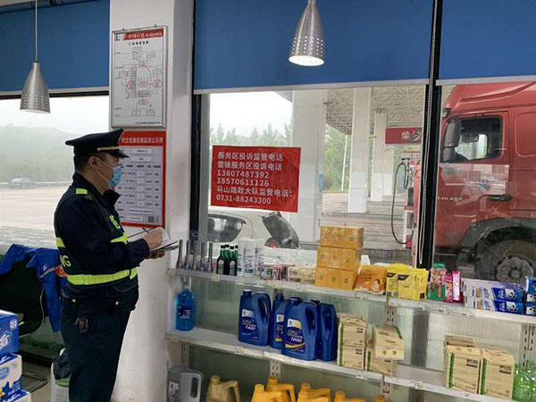 在各个服务区现场,路政队员们24小时蹲点值守,对照“厕所革命”标准要求,每天不限次数对卫生间的地面、墙面、洗手盆、便池的卫生保洁情况进行检查,督促保洁人员保持公厕无积水、无流溢、无臭味、干净整洁;实时巡查加油站、超市、餐厅、停车区等公共场所的安全及卫生情况;规范服务人员的着装、工作纪律、文明用语、温馨服务等并随时督查执行情况。巡查、指挥车辆、维持秩序、督促和参与保洁、问卷调查是他们的工作日常,服务区内随处可见行走中的那一抹抹蓝。