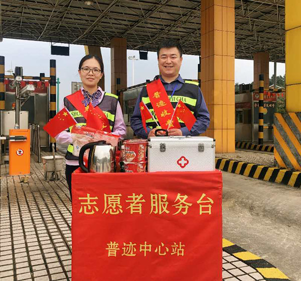 今年国庆中秋一共有8天小长假,返乡探亲、自驾出游的车流激增,高速公路也迎来了客流高峰,湖南省高速公路集团有限公司长沙分公司普迹中心收费站所持续开展“情满双节 爱在旅途”的志愿服务活动,为过往司乘营造温馨、快捷的通行环境。站部在收费广场搭建了志愿服务台,为过往司乘免费提供茶水、矿泉水、方便面、地图、应急药品、简易修车工具等物品,还增添免费路线咨询、车辆加水等服务。
