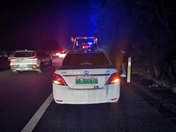 “国庆、中秋”双节接近尾声,武深高速浏醴段再次迎来车流高峰,车流量巨大、驾驶员经验不足使得浏阳路产大队辖区事故频发。10月6日晚20:45分,刚从路上处理完一起三车追尾事故归队的汪大为、高辉正习惯性通过导航软件对辖区路况进行监控。发现地图中北盛服务区至北盛收费站出现路况拥堵“红色预警”,两人立马整装再次赶赴拥堵路段调查处置。赶到现场查明,拥堵是因为北往南K277处发生三车追尾事故导致,汪大为、高辉立即展开处置。然而就是事故处置过程中因为车流量太大,同时驾驶员经验不足又未保持安全车距,分别在K276+400、K273+800、K273+750、K273+400再次发生多起追尾事故,造成1人受伤,受损车辆多达18台,近5公里路段拥堵紧急情况。