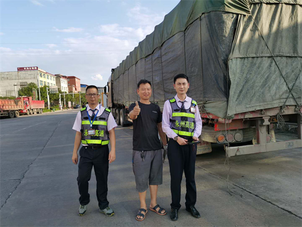 10月3日,珠山收费站当班收费班长及收费员帮助跑长途的绿通司机加固货物,因为工作精细得到了司机的认可,对当班人员竖起了大拇指。