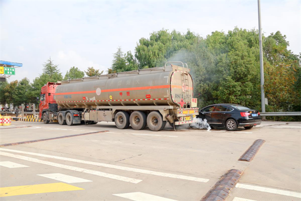 “开始”,随着现场总指挥一声令下,上午09时演练正式启动。“砰、砰…”传来碰撞发出的巨响,小车、罐车两车在泉南高速公路衡枣段潘市收费站口发生碰撞……