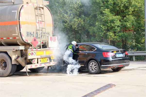 “这里是潘市收费站……”在接潘市收费站的电话后,湖南高速集团永州分公司监控分中心第一时间报告值班领导,同时将情况上报湖南省高速公路集团有限公司应急值班室,并紧急报告永州市应急管理局、祁阳县应急管理局、永州支队12122指挥中心、永州消防救援支队等相关部门。