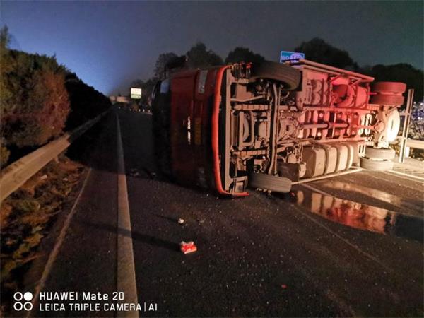 11月5日3时42分,湖南高速公路集团有限公司河洑养护所接到电话,称在G5513长张路段西往东方向K151+335M处冷藏运输车侧翻,横跨行车道、超车道,情况危急,很容易造成二次事故,急需迅速处理。