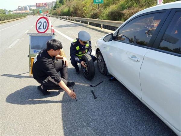 为节约时间,路产队员提出帮助更换备用胎,但司机黄某却坚持要自己换,并声称自己换胎非常熟练,说不定还比路产队员还要换的快些!