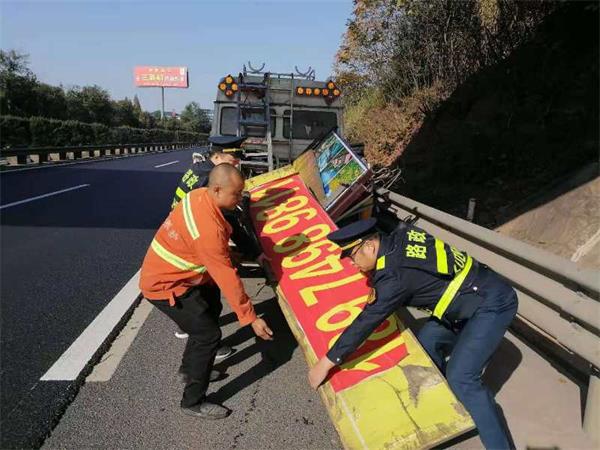 此次联合行动共出动巡逻车辆4台次,养护车辆2台次,出动路产人员及养护人员12人次,作业氧、电割工具两套,共拆除非公路标制牌15块,横幅1幅,有效消除了道路安全隐患,进一步规范、净化高速公路路域环境。