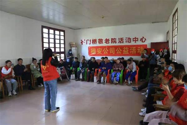 为进一步弘扬中华民族尊老爱老的传统美德,增强广大党员及青年团员的奉献意识和社会责任感,2020年11月11日上午,德安公司党工团组织联合开展了以“德安情系敬老院 传递浓浓敬老情”为主题的公益服务活动,公司党员、青年团员志愿者共40余人参加。