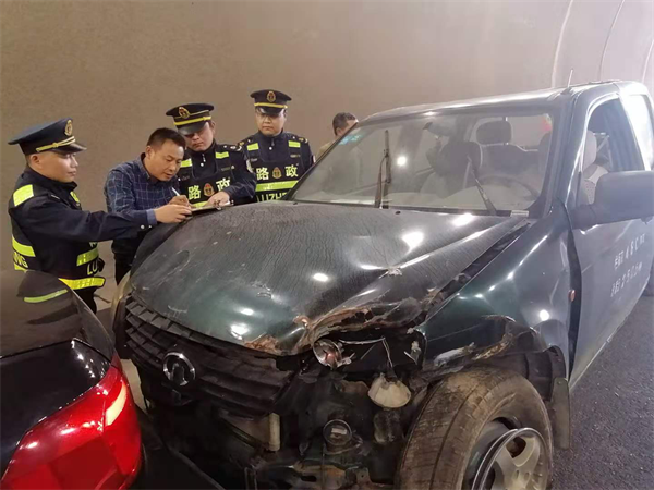 只听得突然“砰”的一声,隧道内两辆轿车在行驶过程中发生追尾,车辆损毁严重,并导致隧道内交通阻断。随后驾驶员拨打了12122请求救援,情况一度十分危急……所幸,这只是浏洪高速河坎上隧道内开展的隧道交通事故应急处置联合演练中发生的一幕。
