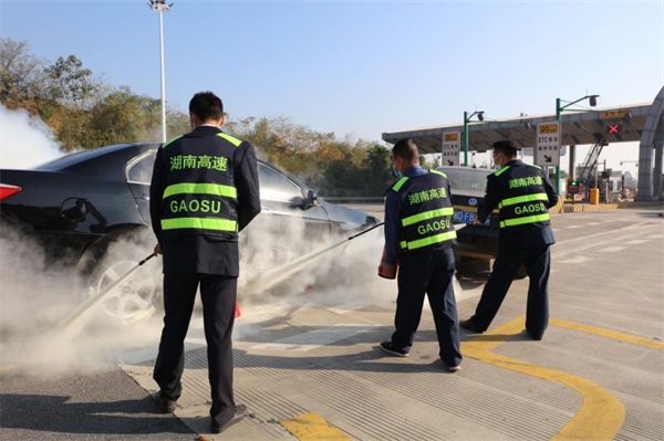 在上报事故险情后,收费站第一时间组织工作人员紧急疏散逃生人员及事故区域滞留车辆,同时关闭收费站,临时采取现场管制,变更通行信号灯,实行交通分流。与此同时,组织应急人员对起火事故小车实施紧急灭火处置。