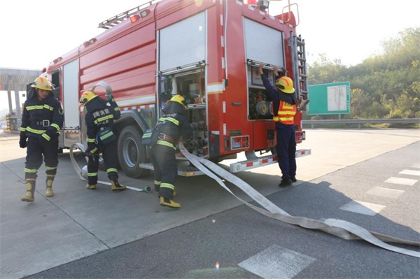 衡阳分公司监控中心接到收费站报告并通过广场监控核实,立即启动应急救援预案,成立应急救援指挥部,通知各相关联动单位参加抢险救援。