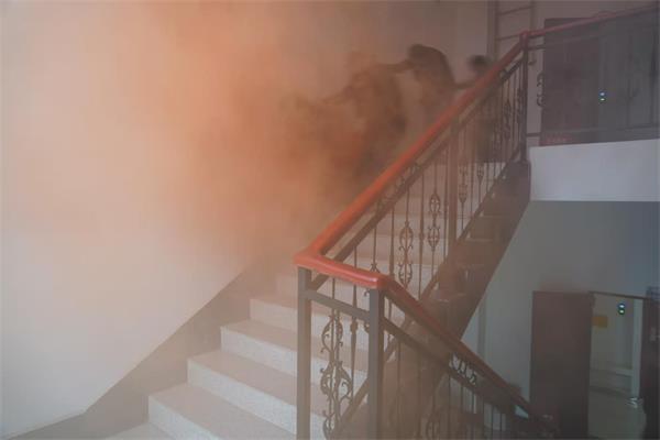 课程结束后,一场火灾逃生演练在分公司本部办公大楼随即开展,浓烟弥漫的“火灾现场”,演练人员运用教官现场示范的方法,用衣物捂着口鼻沿着墙壁有序逃生,短短几分钟,全部参演人员依次有序的逃离,演练圆满结束。