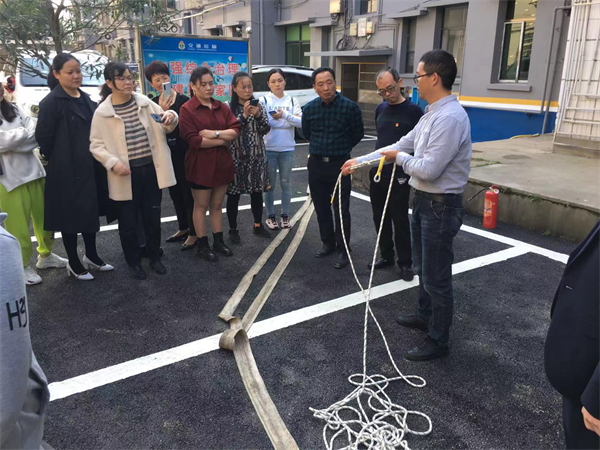 (图为消防专干演示消防救生绳节操作方法)