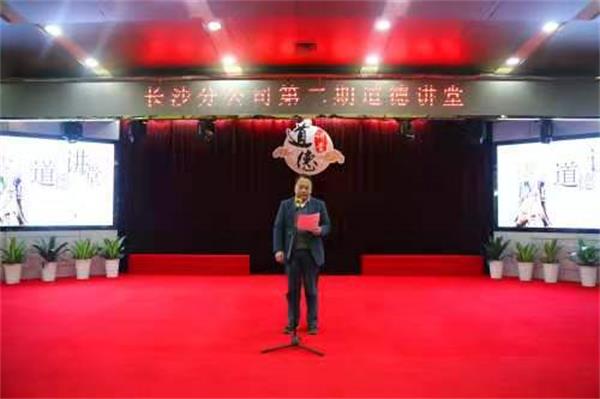 11月24日上午,在长沙分公司一楼会议室,120余名干部职工闭目静思“开场三问”,伴随着古典音乐声,长沙分公司第二期道德讲堂开讲啦!