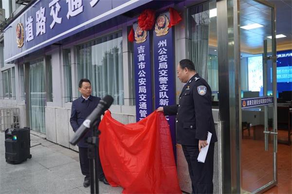 11月27日,吉首市乾州街道办事处道路交通安全风险防控中心暨州公安局交警支队新时代县域警务示范点挂牌成立,湘西州公安局党委副书记、常务副局长张杰、吉首市副市长、市公安局局长石绍峰出席挂牌仪式并揭牌,湘西州公安局党委委员、副局长李博同志主持仪式,湘西州公安局、吉首市公安局、市乾州街道办事处、市行政执法局、市交管所、市公路养护中心、市教体局、市农业农村局、市公用事业服务中心等相关单位负责人以及部门负责人参加仪式,并参观该中心。