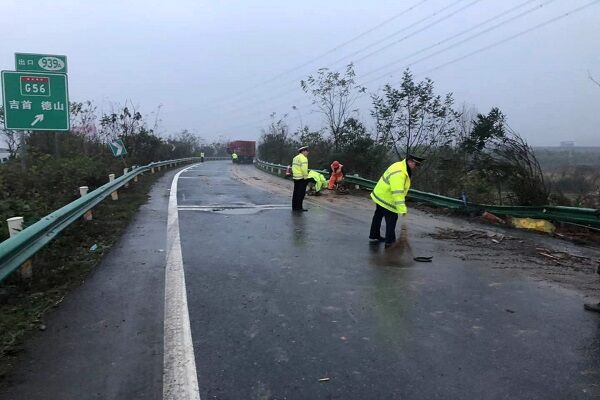 在事故现场,由于货车装载的满车蜜蜂多半散落,需要转运和及时清理,路产员、高速交警、养护员共同对现场残留物和路面进行清理。由于处理及时,措施得当,该事故未造成高速公路大面积拥堵,也为车主挽回了经济损失。