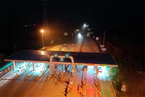 新化收费站是娄底分公司车流量最大的一个站,并在全省高速公路收费站车流量排行榜中名列前茅。随着车流量逐年递增,新化收费站现有车道已无法满足需求,改造扩建迫在眉睫。我到达新化收费站时已是下午5点多,因是阴天,光线不太好,且收费站前的道路两旁有许多高压线,给飞行拍摄增加了难度。