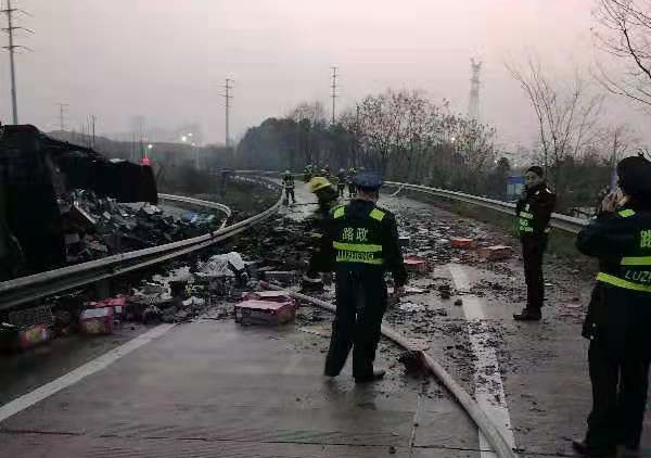 12月27日16时18分许,长株高速黄花互通匝道长永至长株方向一辆运送烟花的货车发生侧翻,整车烟花倾倒在高速公路上。长株路产人员接监控报警后,迅速启动应急预案,调动清障施救队一起火速赶赴现场。