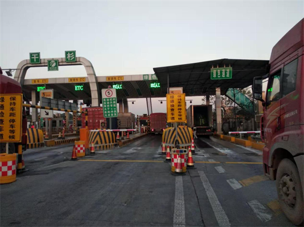 鉴于上述情况,干杉收费站强化整改措施,在入口安装二行栏杆,收费员在亭内控制车辆入口称重通行情况,实行一车一杆制,有效避免了车辆冲磅、跳磅、搓磅情况的发生,也确保了入口车辆有序通行。