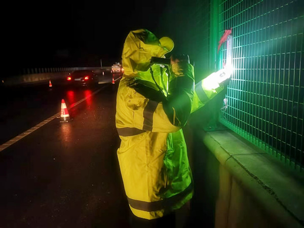 12月29日晚9点,安化路产大队、安化养护所工作人员在辖区桥梁做好标志标牌摆放,引导车辆通行。