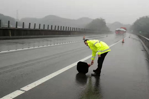 12月29日上午,德安公司董事长肖玉辉同志亲赴一线,对常安高速进行全线巡查,检查路况以及抗冰保畅准备工作,对抗冰保畅工作进行调度与指挥。受寒潮影响,常安高速刮起了大风,飘起了大雨,全线多处压道锥桶被刮倒,长塘养护所立即组织所内人员分成两组,联合养护施工单位、路产以及交警在路上不间断的巡查,查看桥梁温度计,上报信息,并在保证自身安全的前提下,对倾倒的锥桶进行安全维护,对损坏的锥桶进行更换,保证常安高速的安全畅通。