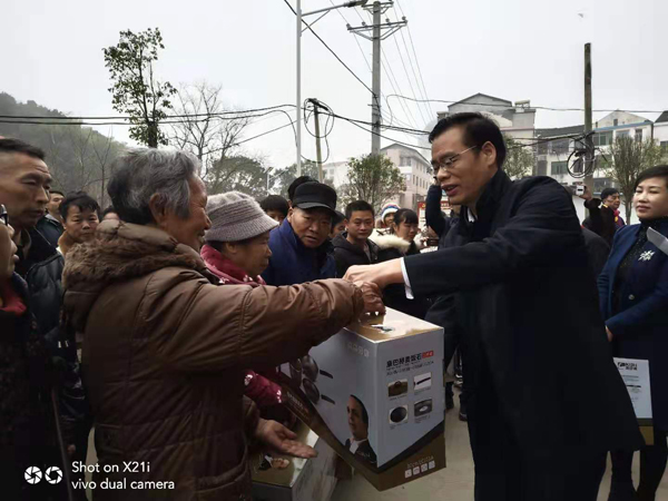 “心里很温暖,日子更有奔头了。”年逾五旬的搬迁户谭凤秋高兴地说。当天上午,来自衡东洣水志愿者协会的50多名“衡阳群众”为安置点的58户易地搬迁贫困户送上“精神年货”和“新春礼包”,现场除给每户搬迁户发放了价值3万余元的生活厨具礼包外,志愿者们还给村民们带来了极具本土特色的花鼓戏、乐器联奏文艺汇演,医疗义诊、爱心义剪等志愿服务活动。精彩的演出博得现场阵阵掌声和欢呼声,村民们喜笑颜开,纷纷拿出手机记录精彩画面。