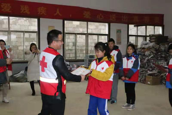 今天,为践行红十字“人道、博爱、奉献”的精神,将温暖送给最需要的人,湖南省红十字会爱心志愿服务队“红十字青少年”湖南师大附中博才实验中学爱心助残活动在岳麓区上善助残服务中心举行,来自博才实验中学C1909班的学生、学生家长和红十字会爱心志愿服务队的志愿者给残疾群众送去棉衣、棉被、保暖内衣、书包、食用油等生活急需物资,并且精心为他们奉献了众多节目:诗歌朗诵、舞蹈、唱歌等等。所有的爱心天使融入残疾群众中,尊重他们,关心他们,不仅关心他们的生活,更关注他们的心理需求。湖南省红十字会爱心志愿服务队张松队长说:残疾人是流落人间折翼的天使,只要每个人都献出一份爱,他们的生活将更加幸福,世界也将绽放更多如花的笑脸。