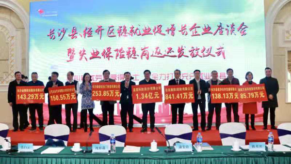 1月17日上午,长沙县、经开区召开“稳就业促增长企业座谈会暨失业保险稳岗返还发放仪式”活动。为521家企业发放失业保险稳岗返还资金1.65亿元,惠及近10万名企业职工,惠企力度全省排前列。这是长沙县根据党中央稳就业工作部署,结合主题教育,振奋实体经济、健全有利于更充分更高质量就业的促进机制,建设人民满意的现代化充分就业强县重要举措。