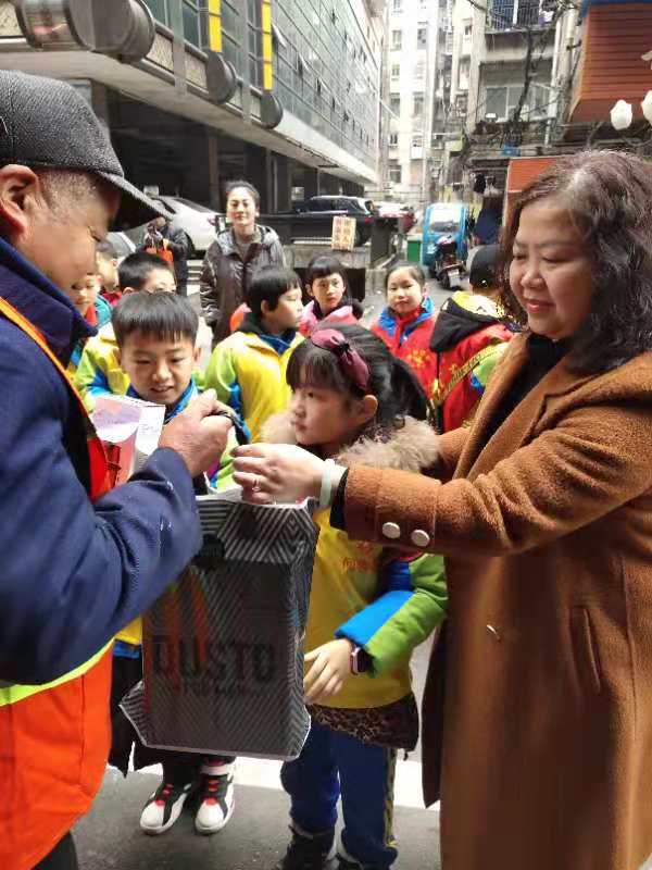 校长陈淑君向记者介绍,活动由学校大队部发起,各班级家长委员会积极协调,一、二年级的主题是:“把爱带回家” 欢乐中国年。学生和家长、老师、同学们(特别是邀请父母不在身边的同学)一起学习包饺子、做汤圆、剪鼠年吉庆窗花,写福字、写春联,或者筹划不一样的中华优秀传统文化传承活动。三、四年级组织的是“衡阳学生在行动 我为城市添新装”学雷锋志愿服务活动。同学们都知道美丽的雁城正在创建全国文明城市、全国卫生城市,环卫伯伯们时常起早贪黑,不惧严寒,成为了家乡衡阳的“美容师”。让学生们在寒假,为辛勤工作的他们献上热茶,穿上志愿者红马甲为他们分担辛苦。五、六年级组织的是“传承红色文化”——扣好人生第一粒扣子主题实践活动。假期里,依托社区等各类活动场所,和家长、老师们共同观看红色经典、爱国主义影片,阅读英雄人物故事,学唱革命歌曲。