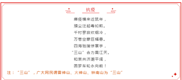 “这个春节,因一场突如其来的疫情而不同寻常。我们感谢无数的白衣天使们、党员干部们,你们冲锋在前,守护着我们的安宁;感谢无数的老师们,你们守岗尽责,无微不至地关心我们的健康,疏导我们的心理压力,通过网络教学让我们“停课不停学”。我们宅在家里也要为国家做贡献。”这就是长沙市望城区每位莘莘学子的心声。