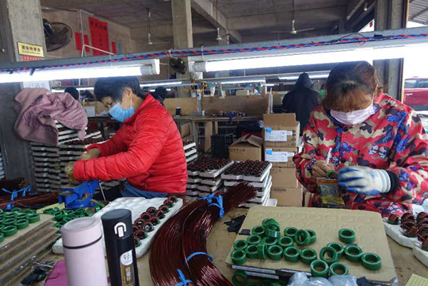 位于杉林山村娄衡公路旁的盛达电子厂,戴着口罩的28名员工各就各位,脱膜的、剪线的,个个忙得欢。“我是隔壁锁石镇双牌村人,早几年一直在外打工,2016年和老公回家就租下了这栋房子,办起了加工变压器电子线圈的盛达加工厂。”38岁的老板娘李祖兰说,“就近的20多名留守妇女,成为厂里的首批员工。有了政府的支持,4年来厂子办得有声有色,年均获利30万元以上,开辟了贫困妇女就业致富的‘快速通道’,受到当地群众的好评。”