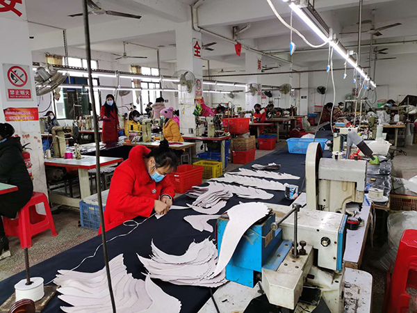 来到双峰县瑞丽鞋面加工厂,50多名女工正聚精会神地工作着,虽然个个戴着口罩,但掩饰不住内心欢乐的心情,59岁的吴江河笑着说:“我是个残疾低保户,2015年厂子建起后,老板对我很关照,忙时忙农活,闲时进厂做手工,每月也有1000多元的收入,基本解决了生活开支。”