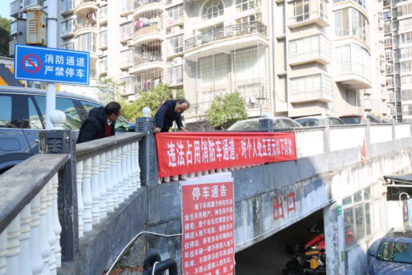 周密部署发动,推动责任落实。支队抓住舆论关注“消防通道堵塞影响救火”的有利时机,积极主动向市委、市政府领导汇报,主动协调住建、城管、公安和消防四部门联合会商,研究部署集中治理行动,联合下发《关于开展打通“生命通道”集中攻坚行动的通知》,建立形成多部门联合执法和信息互通机制。并依托安委会、消安委平台制发公告,将堵塞消防车通道做为安全生产隐患问题,纳入每月对各县区的问题交办函中。永州市召开中心城区打通“生命通道”集中攻坚行动专题会议,坚决治理消防车通道占用、堵塞、封闭以及高层住宅室内消火栓不能正常供水等突出问题。各县(区)职能部门组成联合工作组深入辖区高层建筑和大型商业综合体、宾馆饭店、学校医院、文博单位、养老机构、公共娱乐场所等人员密集场所,以及居民住宅区等集中开展消防车通道治理29次,督促、指导社区居委会、物业服务企业开展消防安全自查128次,治理消防车通道、消防设施存在的突出问题116个。同时,在全市大力普及“96119”消防安全隐患举报奖励机制,并向全市公布各县区举报投诉电话,鼓励群众举报占用、堵塞消防车通道等隐患问题。组织全市物业管理公司负责人,召开消防通道整治专题会议,各大队联合交警、街道社区、派出所等主要负责人开展消防车通道专项排查整治工作。