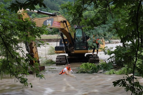 5月14日清晨,湖南省张家界地区突降大雨,导致多条河流涨水,在慈利县金岩土家族乡三元村,2名挖掘机司机蹚水准备把停在河中央的挖掘机开到岸边。2人行至河中央,因河水急涨,导致人车被困,情况十分危急,立即报警求救。8点29分,慈利县消防救援大队接警后,迅速出警赶赴现场施救。同时,张家界市消防救援支队指挥中心调派阳湖坪特勤消防站前往增援。