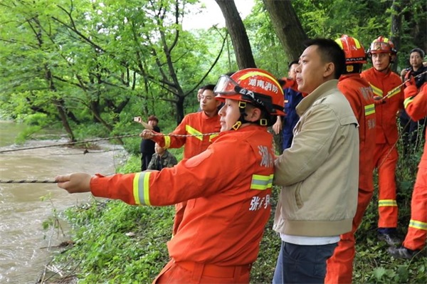 随后,张家界市消防救援支队调派的增援力量到达。经现场指挥部研究,决定转战对岸水位较浅的位置,然后设法营救。