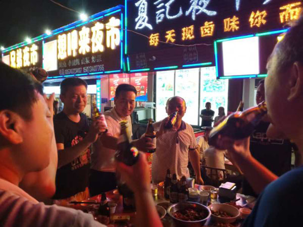 在这条特色夜市街上,大大小小的餐饮店铺鳞次栉比。作为衡阳的重要地标,五一路“夜市”历史悠久。然而,历经时代变迁之后,这条老街区也存在着经营业态杂、店铺档次低等问题。为激活夜经济,当地政府引入了专业品牌企业衡阳燕京啤酒,下大气力对整条街区提质改造。运营企业负责人胡蓉介绍说:“我们一方面把街区外立面进行了升级,重现了灯火辉煌的景象。另外,我们还引导门店坚持诚信优质、绿色环保、顾客至上的服务理念,增加特色夜宵的吸引力,使得街区客流量显著增加。”