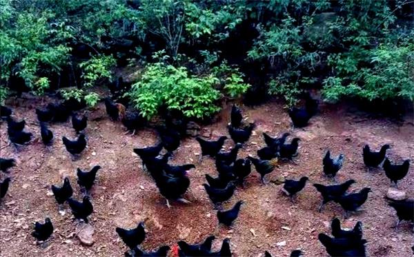 “这种丘陵山坡,下雨就把鸡屎冲下去了,相当于自动搞卫生。紫色页岩是砂石地不是泥巴,鸡本来就要吃点沙子,所以这里的鸡很少患病,毛色油光发亮。还有树林能给鸡躲荫,让鸡在山林里尽情地追逐打闹,它们自己觅食自然生长,这样长出来的鸡才会肉质鲜美。”李佰生坚持认为紫色页岩山地是生态养鸡产业的有利条件。