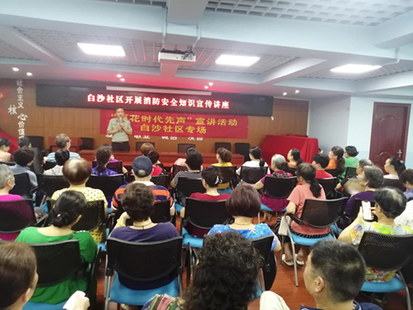 不知不觉时间到了四点十分,邹教官的宣讲课结束了,参加讲座的七十六名居民不约而同的给邹教官送上了热烈的掌声!家住高层小区的熊术泉大哥对邹教官说:你的这堂讲座太精彩了,现在生活好了,家里的电器越来越多,身边的安全隐患也增加了,听了你的这堂课,真的讲得好,通俗易懂,太感谢教官了!