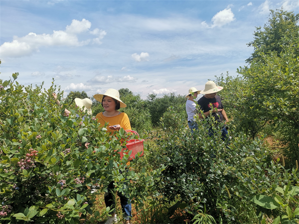 (市湘蓝农业科技发展有限公司的蓝莓园连片种植了700亩蓝莓,每到周末前来采摘的客人成群结队)
