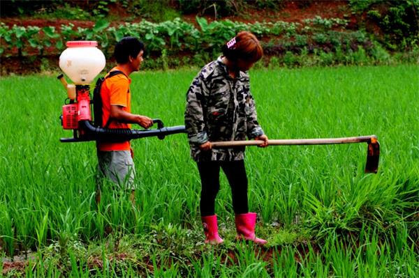 6月19日下午,笔者几经曲折,在一个偌大偏僻的田野里,这里手机信号不稳定,我们开车东转西转才终于找到整个山区唯有的他们两个人,他和妻子俩人正在默默的施肥和除草。他说:"这个时候田间管理很关键,如果施肥不足,营养不好,就会影响头季产量,如果收成不高,真对不起农行的扶持和关心。"他指向站在身旁的农行衡南县向阳支行工作人员说。