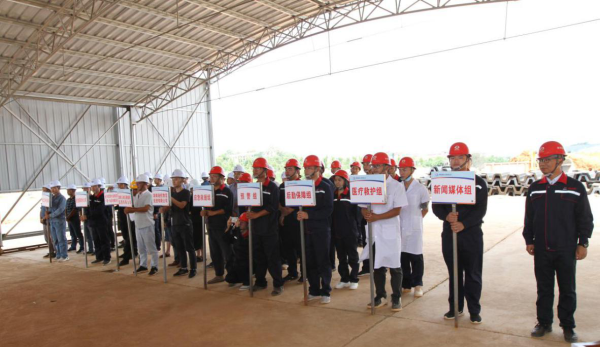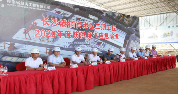 “请各小组各就各位,近期受湘中以南地区普降中到大雨影响,项目所在湘江河段水位快速上涨,目前已涨至距离桩基施工平台约1米处且上涨速度不减,现启动橙色汛情预警(Ⅱ级),铜官港区二期工程项目部防洪度汛领导小组要求各应急小组立即组织桩基施工区设备和水工结构区施工人员进行撤离……”,正在进行的是长沙港铜官港区二期工程2020年防洪度汛应急演练。